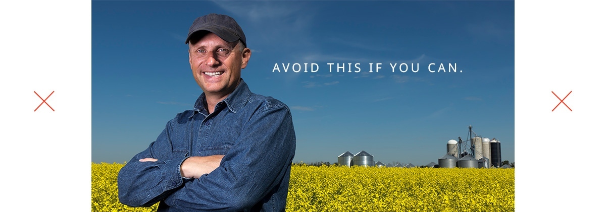 When your project is limited to stock imagery, there’s a small collection of appropriate agriculture-themed images you can find on the internet for a reasonable price. Luckily, many of these fit the ‘farmer’ persona: Postured-up, wearing a plaid shirt with some work gloves (arms crossed), standing in their field with a look of accomplishment on their face, as though they just grew the best crop they possibly could. Just like a proud father looks when their son scores his first goal in Timbits hockey. This is how all farmers look, so it’s probably a safe bet to grab one of those images for your design.